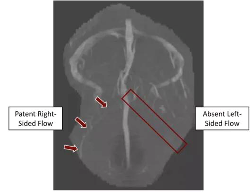 A 32-year-old female presented to the emergency department with 12 hours of headache, visual loss and difficulty speaking.